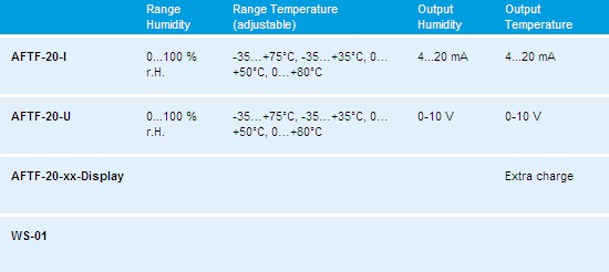 The calibrateable on-wall humidity and temperature sensor HYGRASGARD® AFTF-20 is designed as a robust industry version with steel sinter filter, measuring the relative humidity and temperature of air in accuracy class ± 2 % r.H. The transmitter converts the measurands into standard signals of 0 – 10 V or 4...20 mA and is optionally available with or without display. It is used in non-aggressive dust-free ambiences in refrigeration, air conditioning, ventilation and clean room technology, and as outdoor humidity and temperature sensor. Relative humidity (in % r.H.) is the quotient of water vapour partial pressure divided by the saturation vapour pressure at the respective gas temperature. These measuring transducers are designed for exact detection of humidity. A digital long-term stable sensor is used as measuring element for humidity measurement. Fine adjustment by the user is possible.