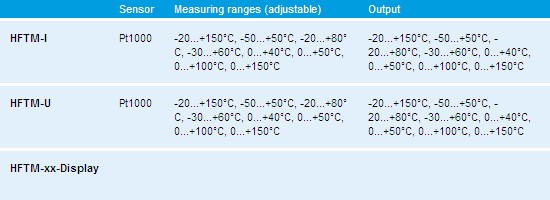 Calibrateable temperature measuring transducer with sleeve sensor THERMASGARD® HFTM with continuous output, optional with or without display (displaying the actual temperature), terminal box enclosure made of impact-resistant plastic and enclosure cover with quick-locking screws. The THERMASGARD® HFTM temperature transmitter with remote sensor is used for temperature detection in liquid and gaseous media, e.g. by installation inside an immersion sleeve, or as duct sensor. The sensors are factory-calibrated. Adjustment / fine adjustment by the user is possible (range and zero point are adjustable).
