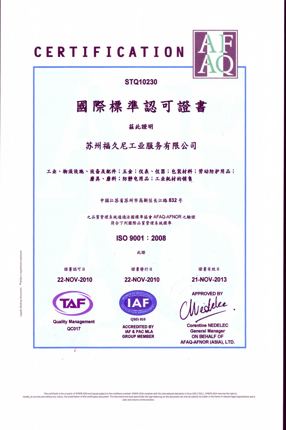 国际标准认可证书