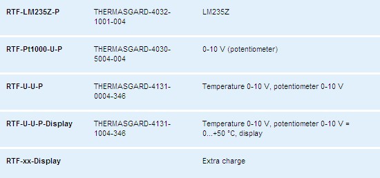 Room temperature sensor THERMASGARD® RTF-xx-P with temperature sensor and potentiometer, optional with or without display for displaying the actual temperature in an elegant enclosure made of plastic, with snap-on lid, base with 4-hole attachment for installation on vertically or horizontally installed in-wall flush boxes, with predetermined breaking point for on-wall cable entry. The temperature measurands can be provided in form of passive or active outputs, also the potentiometer outputs as resistor outputs, or as 0 – 10 V or 4 – 20 mA. The room sensor THERMASGARD® RTF-xx-P is used for air temperature measurement and setpoint adjustment in residential rooms, workshops, in office and business facilities.