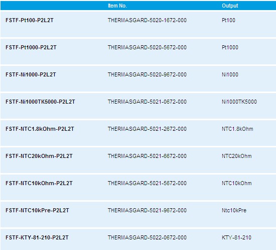 Room temperature sensor and measuring transducer, in-wall, panel switch programme, THERMASGARD® FSTF-xx-P2L2T