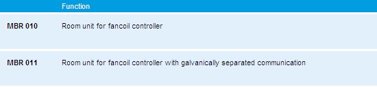 Modbus controllers THERMASREG® MBR 010, and MBR 011 are communicative controllers for temperature control of air conditioning units or climate control convectors (for devices with up to 3 ventilator steps, heating and cooling valves). These devices are equipped with a large well-readable display and are set by single-knob operation (press-turn-press). Temperatures and switching statuses are indicated on the display. They can either be operated stand-alone or in connection with a superior control device (SPS/DDC or Soft SPS), a building management system (RcWare Vision), a monitoring, control and data acquisition system, or a MBRWEB (a web browser interface), via the existing RS485 interface. Two device variants with differing features are available.