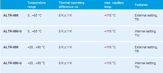 Mechanical temperature controller / contact thermostat THERMASREG® ALTR with switching output (two-position controller). Applied for monitoring, controlling and limiting temperatures at pipes or vessels, e.g. in connection with hot-water or floor heating systems. The contact temperature controller THERMASREG® ALTR is built as one-step device, as adjustable temperature controller TR (external setting) or as adjustable temperature monitor TW (internal setting).