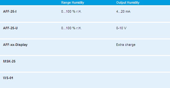 The calibrateable on-wall humidity sensor HYGRASGARD® AFF-25 is designed as a robust industry version with steel sinter filter and exchangeable sensor probe, measuring the relative humidity of air in accuracy class ± 2 % r.H. It converts the measurands into standard signals of 0 – 10 V or 4...20 mA and is optionally available with or without display. The measuring head is pluggable and therefore exchangeable. It is used in non-aggressive dust-free ambiences in refrigeration, air conditioning, ventilation and clean room technology. Relative humidity (in % r.H.) is the quotient of water vapour partial pressure divided by the saturation vapour pressure at the respective gas temperature. These measuring transducers are designed for exact detection of humidity. A digital long-term stable sensor is used as measuring element for humidity measurement. Fine adjustment by the user is possible