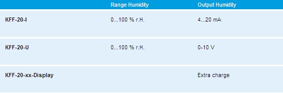 The calibrateable duct humidity sensor HYGRASGARD® KFF-20 is a sturdy industry version equipped with steel sinter filter that measures the humidity of air in accuracy class ± 2 % r.H. The humidity transmitter converts the measurand humidity into standard signals of 0 – 10 V or 4...20 mA and is optional available with or without display, with terminal box enclosure made of impact-resistant plastic and enclosure cover with quick-locking screws. It is used in non-aggressive dust-free ambiences in refrigeration, air conditioning, ventilation and clean room technology, in air and air conditioning ducts for humidifying / dehumidifying of residential rooms, offices, hotels, technical rooms, meeting rooms and convention centres. Relative humidity (in % r.H.) is the quotient of water vapour partial pressure divided by the saturation vapour pressure at the respective gas temperature. These measuring transducers are designed for exact detection of humidity. A digital long-term stable sensor is used as measuring element for humidity measurement. Fine adjustment by the user is possible. A mounting flange is included in the scope of delivery.