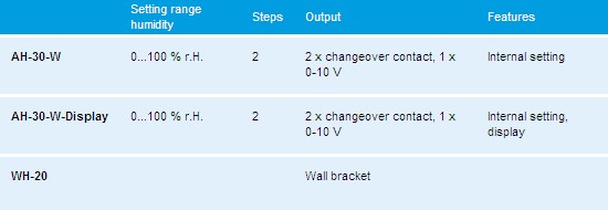 Electronic on-wall hygrostat (outdoor hygrostat) and humidity sensor HYGRASREG® AH-30 with one continuous and two switching outputs, adjustable hysteresis, , optionally with or without display showing actual humidity, accuracy class ± 3 % r.H. It is used for controlling and monitoring the relative humidity in computer rooms, laboratories, clean rooms industrial halls, production facilities, climatic test cabinets, indoor swimming pools, greenhouses, storage halls, etc for the control of humidifying and dehumidifying equipment. These measuring transducers are designed for exact humidity measurement. In the HYGRASREG® AH-30 a long-term stable sensor is used as measuring element for humidity measurement. Fine adjustment by the user is possible. It is applied in dust-free, pollutant-free, non-aggressive air.