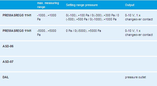 Quality product for HVAC sector, accuracy ± 1.5 % Electronic pressure sensors and switches PREMASREG® 1141 are equipped with four switchable measuring ranges, one switching output and one continuous output, and a display for setting the switchpoint and to display the ACTUAL pressure (four devices in one plus differential pressure switch ⁄ differential pressure monitor and continuous pressure sensor in one and the same device). The pressure sensor is used for above-atmospheric, below-atmospheric, or differential pressure measurement in clean air with limit value switching. The piezo-resistive measuring element guarantees a high degree of reliability and accuracy. Applications of these pressure sensors are in clean room, medical and filter technology, in ventilation and air conditioning ducts, in spray booths, in large-scale catering facilities, for monitoring filters, for level measurement or for triggering frequency converters. Media measured with these pressure transducers are air (non-precipitating), or other gaseous non-aggressive, non-combustible media. The pressure sensor PREMASREG® 1141 has a manual zero point pushbutton and an offset potentiometer for final value and switchpoint correction. Fine adjustment by the user is possible at any time. A connection set ASD-06 (2 m connection hose, two pressure connection nipples, screws) is included in the scope of supply.