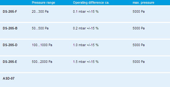 Differential pressure switches PREMASREG® DS-2 incl. ASD-06: |
