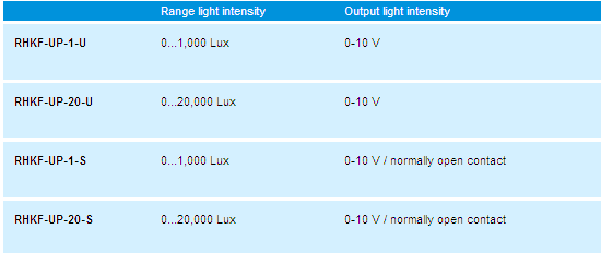 Room light intensity sensors (in-wall) PHOTASGARD® RHKF-UP: |
