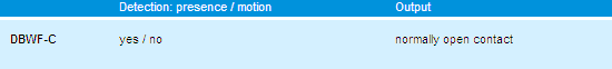 The ceiling-built-in motion sensor KINASGARD® DBWF-C detects the presence of persons and motions and has a switching output (normally open contact). The motion detector is used for the observation and recognition of conditions and for the motion-dependent control of room functions, e.g. for lowering temperatures in unused rooms. The ceiling motion detector is installed in suspended ceilings in corridors and offices as well as in residential rooms and business facilities. The measuring transducer is accommodated in a separate enclosure apart from the sensor. The sensor detects motions over an aperture angle of 110° and a perimeter of 360°. Because of the patented lens system with 20 individual lenses, only very small dark areas are resulting, which even at a distance of 10 m are only a few centimeters wide, safely detecting also small motions.