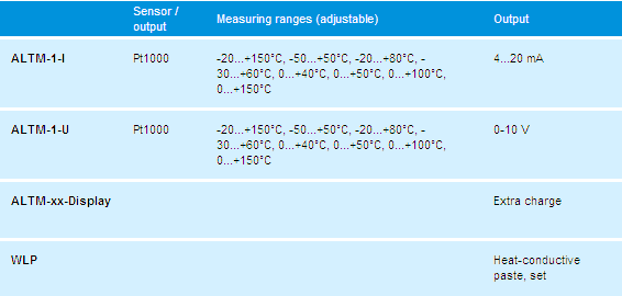 Calibrateable tube contact temperature measuring transducer THERMASGARD® ALTM-1 with continuous output, strap and terminal box enclosure made of impact-resistant plastic, enclosure cover with quick-locking screws, optional with or without display. For temperature detection on piping and tubes (e.g. coldwater and hot-water), or on heating sections for heating system control. The sensors are factory-calibrated. Adjustment / fine adjustment by the user is possible (range and zero point are adjustable).