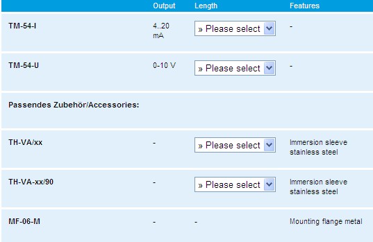 Calibrateable temperature sensor THERMASGARD® TM-54 with eight switchable measuring ranges, connecting head made of aluminium, continuous output, and separate stainless steel immersion sleeve for heavy-duty applications. This immersion sensor is used for the detection of temperatures in liquid or gaseous media. Applications in piping systems, in heating technology, in storage tanks, in district heating compact stations, in hot and coldwater systems, in oil and lubricant circulation systems, in mechanical, apparatus and plant engineering as well as in the entire industrial sector. These temperature transmitters are factory-calibrated. Adjustment ⁄ fine adjustment by the user is possible (range and zero point are adjustable).