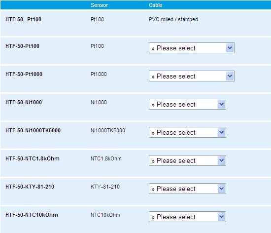 The sleeve sensor / cable temperature sensor THERMASGARD® HTF is used for the detection of temperatures in liquid and gaseous media, e.g. by installing it in an immersion sleeve. The cable sensor can be implemented as immersion or duct sensor. Depending on the application, with silicone, glass fibre, or PVC leads, for two-wire, three-wire, or four-wire connection. The length of the sleeve varies as requested from 30 mm … 500 mm (standard is 6x50mm stainless steel), the cable length can chosen as needed.