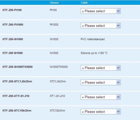 The sleeve sensor / cable temperature sensor THERMASGARD® HTF is used for the detection of temperatures in liquid and gaseous media, e.g. by installing it in an immersion sleeve. The cable sensor can be implemented as immersion or duct sensor. Depending on the application, with silicone or PVC leads, for two-wire, three-wire, or four-wire connection. The length of the sleeve varies as requested from 30 mm … 500 mm (standard is 6x200mm stainless steel), the cable length can chosen as needed.